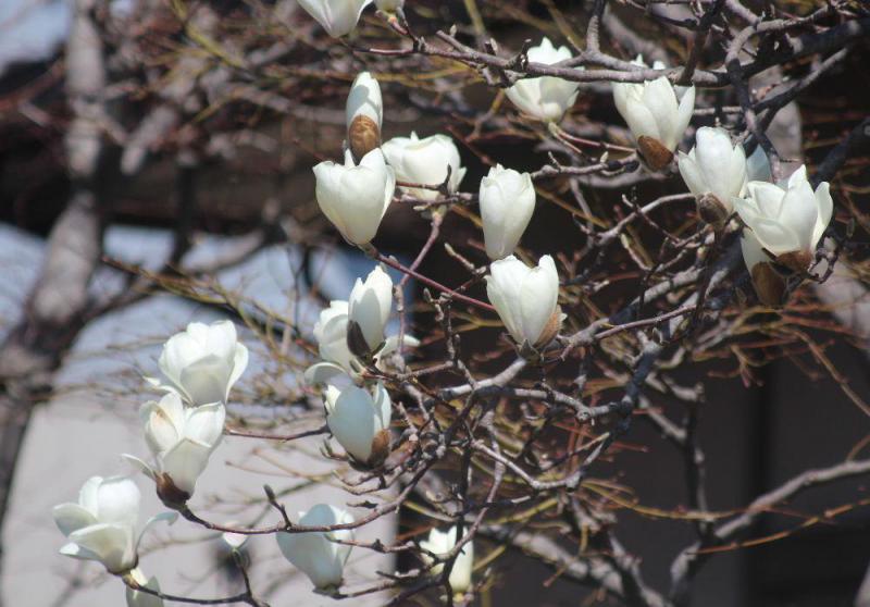 ●いよいよ今日から社会が一斉にスタートするかのように「ハクモクレン」の真っ白な花が陽にはえて輝いています 仕事のしていない小生にとっては格別な一日ではないのですが 学校も役所も会社も新たな一日となり緊張して朝を迎えたのではないでしょうか。 「ハクモクレン」も「コブシ」も見分けがつかないのですが春のスタートを祝福するかのようにそちこちで咲いています