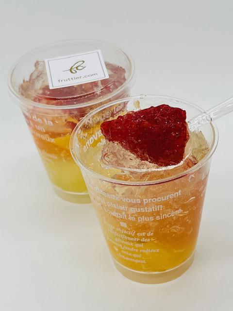 桜も満開!この時期「きらきらフルーツゼリー」が人気です。新鮮なフルーツをぷるんぷるんのゼーリーの中に閉じ込めました。今日のフルーツは・・・・マスクメロン最高級クラウン・あすみ(柑橘の新品種です)・マンゴー・いちご姫店頭にてお買い求め頂けます。※添加物を一切使わずにお作りしています。 とても繊細なゼリーのため店頭のみの販売となります。