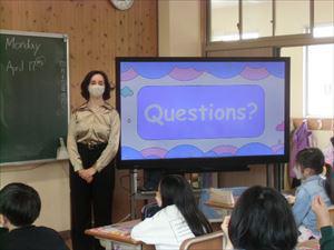 5年生の教室では4月からお出でになったニコ先生と菅先生のコンビで英語の授業でした。初めてなので、たくさん「Question」してもみようと呼びかけていました。今まで習った聞き方、What ~do you like?やDo you like ~? そうでなければ、日本語でもいいし、まずやってみようです。Try&Try!まちがってもいいんですよ。どんどん質問をしていました。How old are you?これは、女性に聞いてはいけない禁断の質問では?と思ったら簡単に「Yes,22years old」若いって素晴らしいね。こちらに来たら、many many years oldと答えるしかないのに。子供たちも先生も楽しそうです。「(質問)できた!(先生の好きなものが)わかった!そしてうれしい!授業」が行われています。