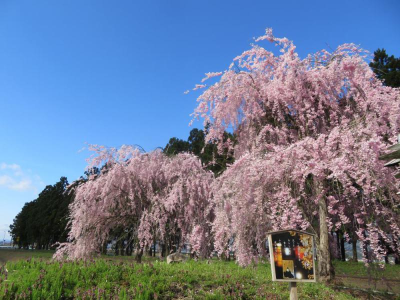 羽前成田駅の桜情報をお伝えします。染井吉野は先日の強風で散ってしまいましたが、枝垂れ桜は満開で最高の見頃です。そして薄黄緑色が上品な鬱金(ウコン)桜が、ようやく咲き始めました。濃いピンクが美しい関山はまだ蕾です。今週末までは十分楽しめるようです。北側の十月桜と椿も頑張って咲いています。どうぞご覧ください。