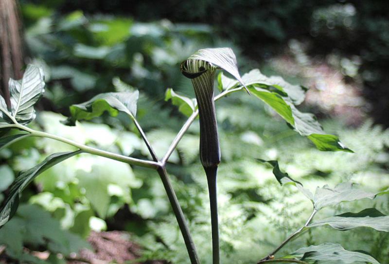 見たこともない草花だったのでスマホで検索したら「マムシグサ」がヒットしました。有毒の野草であると説明してあり、処刑場だからこんな草が生えているのかと帰ってから驚いてしまいました。この花はなんという草花でしょうか。ブログ訪問者のTさんより早速ご連絡をいただきましたのでご紹介します。5/18 PM2:00【今日の花はまむしぐさの仲間と思われます。葉が何枚あるのか、花と葉の位置がどちらが上か、仏炎苞の色や筋などで判断するで、写真を見ると「コウライテンナンショウ」か「オオマムシグサ」ではと思われます。見た目の判断で違っていたらごめんなさい。「テンナンショウ」の仲間は、雌雄異株ですが、栄養がよいと雄株が雌株に変わることが知られています。面白い植物ですね。生き残り戦術なのかもしれません。】