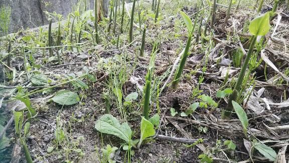 昨日、我が家の家庭菜園、ルバーブの初収穫しましたが、ついでに周辺の草むしりを、思い切ってやりました、雑草除いたら、ミョウガの芽がわんさか出ていました・・家庭菜園は家の南側と北側にあり、北側はミョウガ、ウド、ウコギ、行者ニンニク、ウルイ、ルバーブ、アスパラと多年草を植えている、行者ニンニクだけは年々出来が悪くなってきて、いまは死滅状態ですが、他は、ほったらかしの状態でも毎年ちゃんと出てくるようです。
