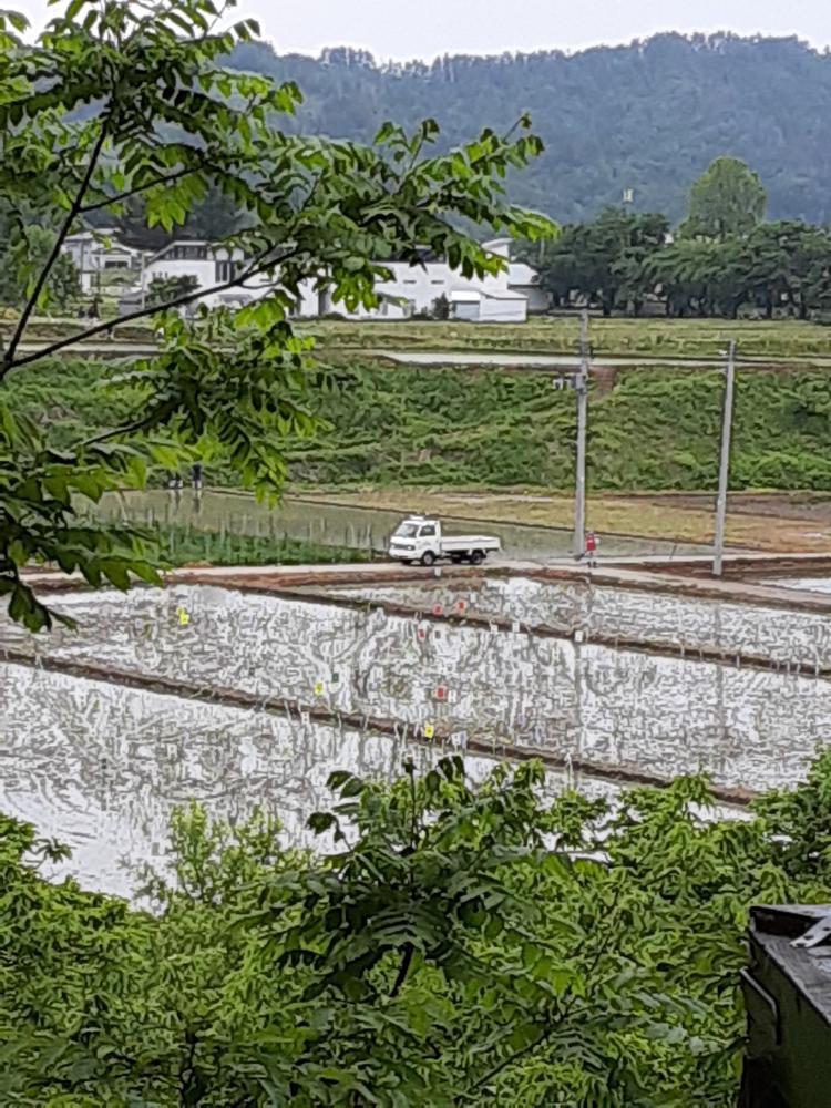 曇り空でしたが、田んぼアートの 田植えでした。(^.^)