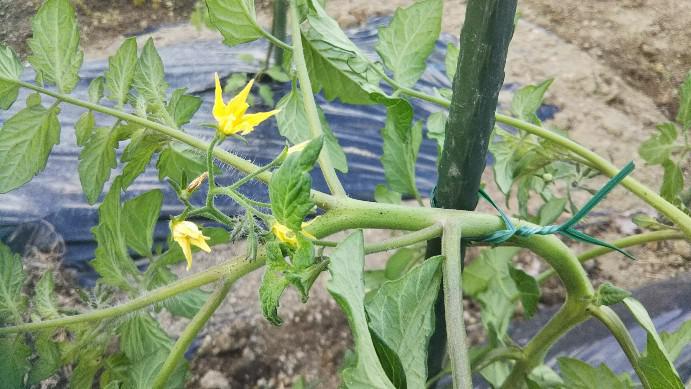 我が家の家庭菜園、5月15日に植えたトマトの花咲いてました、小さな実もついてます・・我が家の茄子にキュウリ、シシトウ、ピーマンの花はこれからですね・・