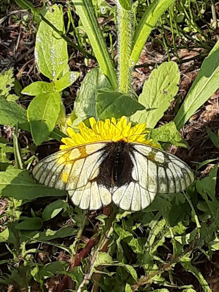 温泉街を流れる 大樽川ぞいの 散歩道をあるくと 今見ることができるのが、ウスバシロチョウです。