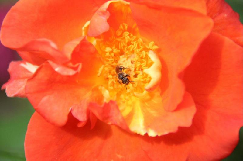 ●オレンジ色の「プリンセスミチコ」という名前のバラにアリが日向ぼっこをしているようにとまっています ありも蜜を吸うのでしょうか それともたまたま迷い込んでのでしょうか 陽ざしは強いのですが風もあり湿度も低いのかカラッとしたさわやかな天候です
