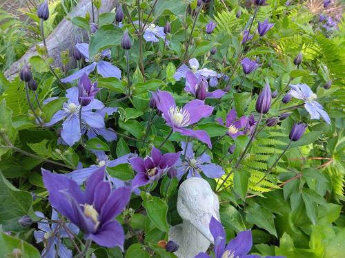 昨日の午前中は風が強く、散ったバラの花びらの掃除で大変でしたが、まだ咲かないバラも多くもう少し楽しめそうです〜♪ (トップ写真)は。。。クレマチスでも変わっている“アラベラ”這うタイプなので野性味が出ていいですよ。ここは、春の山菜「こごみ」のエリアです〜こごみはクサソテツの若芽でシダ植物です。今の時期はしっかりと花たちとコラボ〜♪ ↓その脇では“ペンステモン ダークタワー”銅葉にやさしい色の花で、高さもあり目立つ存在に。すっかりおなじみの花です!今年は、上の方にだけ伸びてちょっとスリムぎみ・・・ 近くにある大鉢のクレマチス。。。フェンスを細工してタワー状態にしています。 今日は『和』の名前の・・・↓“流星”↓“業平”(なりひら) 庭では。。。ようやく“ニゲラ”咲き始めて、庭に色を添えてくれています。 その間に隠れるように咲いている“エリゲロン”かわいらしくいろんな色の小さな花です。