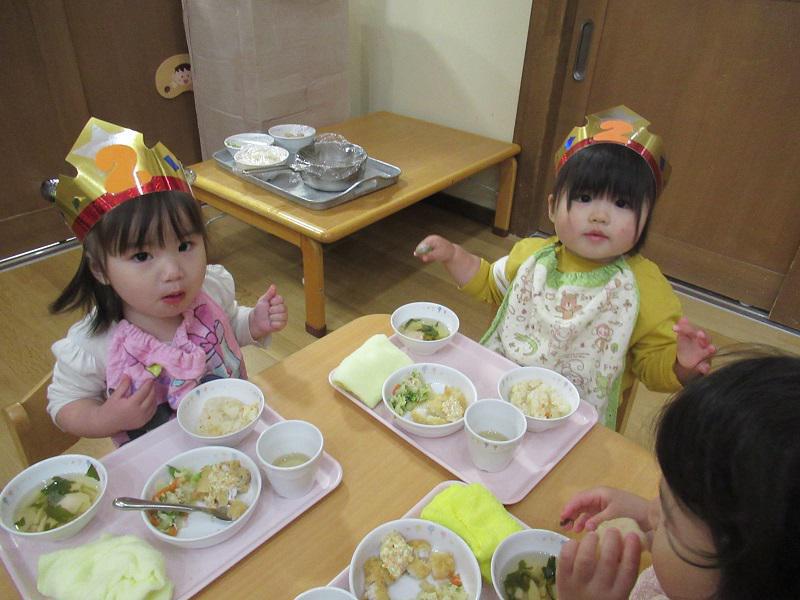 5月24日に5月生まれの誕生会がありました。今回は乳児組、幼児組と分かれて行われました。まずは乳児組の部。3人のお友だちが元気に入場し、ドキドキしながらも名前とお歳を教えてくれました。得意なことの発表は毎日楽しんでいるあそびの中から、巧技台ジャンプやリズム運動を元気いっぱい見せてくれました。 続いて、幼児組の部。7人のお友だちが誕生日を迎えました。お友だちがいることで緊張も和らぎ、堂々とインタビューに答えたり、得意なことを発表してくれました。司会はペアルックのようなゆり組のおふたり。お家でも練習してきてくれて、堂々とハキハキ進行してくれました。たくさんのお友だちにお祝いしてもらい、ちょっぴり照れながらも嬉しそうな誕生児。おいしい給食と5月にちなんだこいのぼりケーキをお腹いっぱい食べました。