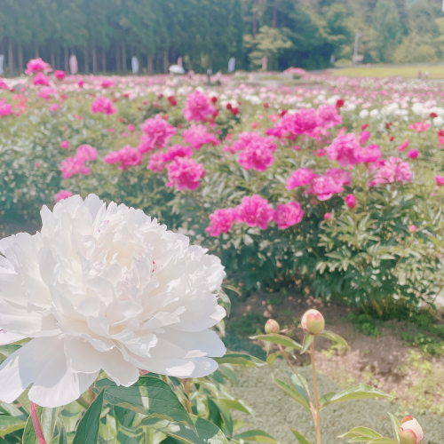 ながいピオニーの森の芍薬は「見頃」となっております。 多くのお客様にお越しいただいており、笑顔で記念写真を撮影される方が…!ながいピオニーの森には、しゃくやく園の他にもハーブ園、大型ブランコ、日帰り温泉「長井あやめ温泉ニュー桜湯」、トレーラーハウスなど様々な施設がございます。是非皆さん、ながいピオニーの森へお越しください。 そして、ここ数日暑い日が続いております。お出かけの際は、こまめな水分補給と休息をお取りください。 ながいピオニーの森住所:山形県長井市寺泉4246-2