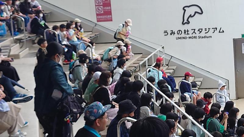一番楽しみにしていた子も多いのではないでしょうか。うみの杜水族館の見学です!イルカショーに何とか間に合いました!様々な海の生き物をびっくりしながら見ていました。お土産を買うのもここが最後、ぬいぐるみは今年も大人気です。