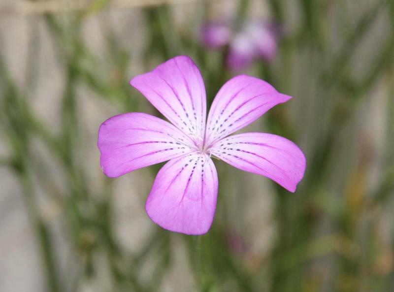 ●昨日 知人の玄関先に薄紫色の可憐な花が咲いており「ムギナデシコ」と教えてもらいました 枝先に5枚の花弁が咲き中心部が白く花の中心から外側に向かって細い線が印象的です 調べてみると初夏を知らせる花であるといわれているそうで 風にそよぐ姿が涼し気だろうと想像します