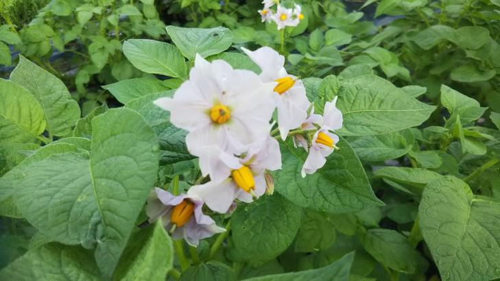 我が家の家庭菜園、ジャガイモの花が咲いています、花が白色と、薄紫色がある、今年は4種類のジャガイモ植えました。収穫時期はお盆の頃、収穫後はむしろに広げて乾かした後、冷蔵庫の野菜室と発泡スチロールの箱に保存します、新聞紙にくるんで湿気を取るようにしておくとよいです、納屋に置いてるのは翌年の3月まで、3月からは冷蔵庫の野菜室の芋を食してます。冷蔵庫は自家野菜の保存用とお酒用に1台使用してます。ジャガイモは長期保存ができる野菜、ペルーの山岳地帯はジャガイモが主食、食用に3000種以上もあるというから驚きです。