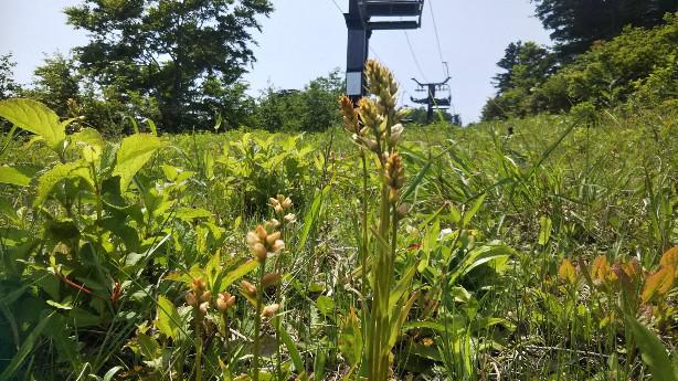 天元台高原の第二リフト、第三リフトのゲレンデやリフト下などの草地に生えている多年草、ネバリノギラン、あまり目立つ花ではないがゲレンデでよくみるとあちこちに出ている、花と言っても蕾なのか?これで咲いてるのか?よくわからないような花、茎部を触るとねばねばしている。漢字で”粘り芒蘭”