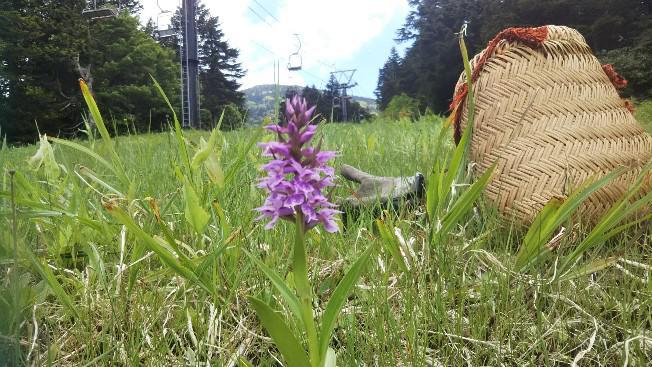 昨日天元台高原にタケノコ採りいきました、帰りはリフト使わず、ゲレンデをのんびり下山しました。先週咲いてなかった花が見れるか?そんな期待でゆっくり下山・・第三リフト乗り場付近で”テガタチドリ”か”ノビネチドリ”だったかも?花がほとんど差がなく葉の形で見分けるしかないのですが一本だけ咲いていてうれしくて、荷を下ろしてパチリははきにしてなく見なかったんでのびねちどりかもしれません