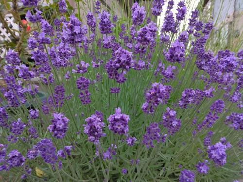 バラも終わり宿根草の庭になってきました。じーじが南側からだったので、ばーばは裏庭を北側道路からいつものパチリです。 土留めをした所なので皆さんが気づかない場所になっています。道路は低い位置にあるので見上げて・・・ 毎年ラベンダーがいい感じで増えてくれています!富良野ラベンダー、今が最高〜〜遠くからも目を引きます。今年はきれいなうちに刈りとりドライにと思っていましたが早くしないと・・・花が五分から八分咲きがいいようです。 ↓“アカンサススピノサス”増えた株ですが、行き場が無くてここへ。場所が良かったのかもうこんなに・・・一番早い! ↓“テウクリウムヒルカニカム”舌を噛みそうな名前で中々おぼえられない。 ↓“スタキスモニエリ”この場所に来てから順調に増えています! ↓東側の“ラベンダー”大型の品種、開花はこれからになります。  ↓“じーじの野菜コーナー”トマトの好きな孫の為に工夫しながら育てています!今年は肥料をいつもより多く投入、おいしくなーれ、おいしくなーれです。