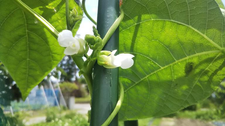 我が家の家庭菜園、雨が上がり梅雨の晴れの日、畑の雑草も野菜たちもすくすくと成長してます、いんげんの花が咲き実がついてきました、いんげんはてんぷらに素揚げ、ゆでて胡麻和えにとおいしくいただきます。