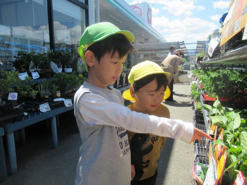 今年も畑活動が始まりました。 ぐー・ちょき・ぱーグループ毎に何の野菜をどんなふうに食べたいか話し合い、苗を買いにいざコメリへ!苗を購入すると大事そうに持ち、園へ帰ってくる子どもたち。各グループ毎、苗植えをして水やりや草むしり等お世話が始まりました。2階の窓から畑を見て、「大きくなってる!」「草が伸びてきた!」と畑を気にする姿もあります。 ぐーグループはきゅうりを初収穫!輪切りにして塩もみしたきゅうりを喜んで食べる子どもたちでした。畑のお世話にさらに気合いが入ったようです。