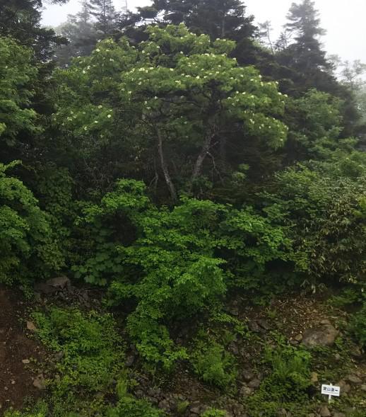 天元台高原第三リフトの降り場、西吾妻最短登山口にあるナナカマド、先週ですか一気に花が咲きました、1820m以下のとこからずっと遅れての開花、というかこの木の花が遅かったのかも・・名前の由来が、燃えにくく、7度かまどに入れても燃えないというとこからと言われているが、実際は燃えにくいと言うこともないようです。花は白く、秋になると赤い実をつける。