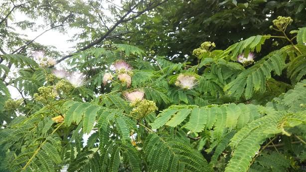 我が家のネムノキの花が咲きました、これが咲くと、もうすぐ夏休み!というウキウキ感で一杯だった小学生の頃を思い出します。夕方や曇りで暗くなると葉をたたんで垂れ下がり”眠る”ことに由来する、