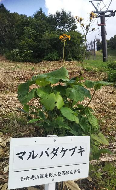 マルバダケブキは和名で”円葉岳蕗”と書く、葉がフキに似ていて円く、山岳地に生えることからついたもの。山地帯上部〜高山帯下部のやや湿った草地や林縁に生え、高さ0.4-1.2mになる大型の多年草。昨年、浄土平から谷地平に登山した折に谷地平ではよく見かけました。天元台高原側ではあまり見かけない花であるが、第一リフト下にポツンと咲いている。花は終わりかけて、ふもとは暑い日がつづいているが、高原は夏の花から秋の花へと季節の代わりを感じます。
