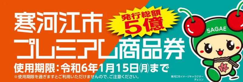 ★使用可能店舗のご確認はコチラ! 地域経済の活性化とキャッシュレス化による新しい生活様式の推進のため、スマートフォンのアプリを利用したプレミアム商品券を発行します。6,500円分の商品券を5,000円で販売!詳細は、市報同封のチラシまたは市HPをご覧ください。 【購入期間】令和5年 8月10日(木)10:00〜 完売次第終了【使用期間】チャージ後〜令和6年1月15日(月)【サポート会場】令和5年 8月8日(火)〜8月15日(火)10:00〜18:00 ★フローラさがえ2階ロビー特設会場※チェリンPayサポート会場の設置につきましては終了いたしました。 【ご利用方法】 @「チェリンpay」アプリをスマホにインストール(Googleplay 又は APP Store) ※以前インストール済の方はそのままご利用いただけます Aクレジットカードまたは市内取扱店舗でチャージ Bお買い物の際、レジでQRコードを読み取って金額を入力して決済 ※クレジットカードチャージ方法は寒河江市ホームページをご覧ください。https://www.city.sagae.yamagata.jp/jigyou/syogyou/cherrinpay.html 【市内チャージ取扱店】■温泉旅館・こころの宿 一龍 時間:10:00〜20:00(無休)・ホテルシンフォニー本館・アネックス 時間:9:00〜20:00(無休)・割烹旅館 吉本 時間:9:00〜20:00(無休)・割烹旅館 福よし 時間:9:00〜20:00(無休)■ガソリンスタンド・寒河江石油(株) 時間:9:00〜18:00・クサカベ石油(株) 時間:9:00〜18:00・潟Wェイエイライフ セルフSSポート中央 時間:9:00〜18:00・潟Wェイエイライフ セルフSSポート西 時間:9:00〜18:00・潟Wェイエイライフ セルフSSポートさがえ工業団地 時間:9:00〜18:00 ※定休日等は各店舗にお問い合わせください。■コンビニ・ローソン寒河江元町二丁目店・ローソン寒河江西根店・ローソン寒河江中郷店・ローソン寒河江仲谷地店・ファミリーマート寒河江高田店・ファミリーマート寒河江中央二丁目店・ファミリーマート寒河江八鍬店・ファミリーマート寒河江新山町店・ファミリーマート寒河江緑町店・ファミリーマート寒河江柴橋店 【その他注意点】★一般店舗のみで利用できるB券です。★たばこ、ごみ袋、事業仕入、公共料金支払い等、購入できないものもございます。★商品券、印紙、ビール券等の換金性の高いものは購入できません。★返金、現金換金はできません。★使用期間を過ぎるとご利用できなくなりますのでご注意ください。 【お問い合わせ先】チェリンPay専用コールセンター:0570 − 058 −999R5.8/8〜R5.10/18開設 10時〜18時(土日祝日含む)