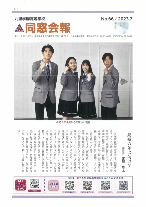 同窓会報66号をお届けします。ダウンロードしてご覧になることもできます。
