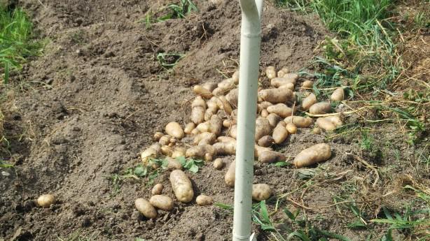 昨日、暑い中でしたが、我が家庭菜園のジャガイモ収穫しました。今年はメークイン、きたあかり、男爵、とうやの4種類を植えて、4種中メークインだけ、暑くて中断です、のこりは今度の休みにでも掘らなければですな、葉が枯れてたら収穫しないと中で腐ってしまうということですから、放ってはいけませんね。メークインはイギリスが原産のジャガイモで、日本には大正時代にアメリカを経由して導入されたとされています。1928(昭和3)年には北海道の釧路や根室地方などにおける優良品種とされ、3年後の1931(昭和6)年には一般奨励品種とされ、今日では「男爵」と並び日本の代表的な品種として広く普及しているとあります。しかし、原産地のイギリスでは今では作られなくなっているようです。名前「May Queen」、その発音「メイクイーン」和名標準的にはメークインとあります。
