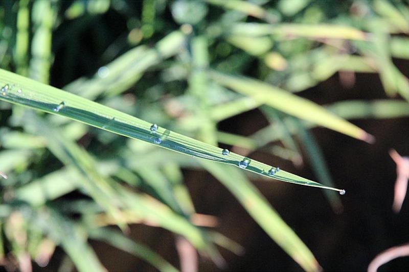 ●朝からジリジリとした陽ざしが痛いほど暑い一日のスタートとなりました 早朝には草花が朝露に濡れ稲穂が少し垂れ下がり田んぼも黄色みを帯びて実りの秋が間もなくです 朝方は気温も低く気持ちよくカメラを手に散歩にでかけました 朝露に濡れる稲の葉を何枚も撮ったうちの一枚です 暑い中ですが秋をすこ〜し感じさせてくれる風景になりました