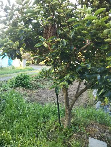8月8日に我が家の柿の木にいる蜂を見つけた。ミツバチの分蜂というもの、偶然にもハチがつく日で、あれから8日が過ぎましたが、まだいます。通常は数日で新たな居場所みつけて、移動するらしいのですが、どうしたものでしょうか?