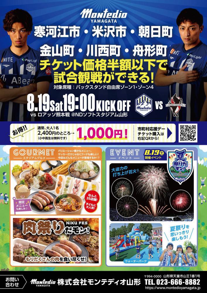 ●モンテディオ山形「市町村応援デー」8/19(土)19:00KICK OFF