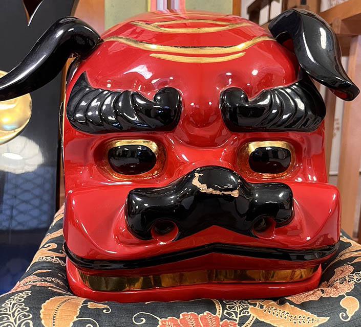赤い獅子頭が一対所蔵されていた。