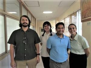 8月から長井市の新しい英語の先生(ALT)になった皆さんが来てくださいました。サム先生、リビィ先生、イライジャ先生の3名です。「よろしくおねがいします」日本語もとても上手です。さっそく6年生や5年生のクラスの英語の授業で「自己紹介」をしていました。好きなものは「アニメソング」「アニメ」、私たちの知っているものから、もっと詳しいところもあってびっくりしました。あっという間に共通の話題ができます。音楽やアニメは日本が世界に誇る文化であると感じました。私たちの行ったことのないところに住んでいた経験なども興味深く、子供たちはたくさん質問していました。ニコ先生も先輩先生として頑張っています。