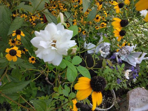 9/1は長井市の交流施設『くるんと』がグランドオープン〜♪オープンを記念して2日、3日と笑顔全開祭が!両日ともにすごい賑わいでした。市役所と隣接していて広い両駐車場も満杯!昨日はちょっと気温も低く曇り空で風もあってよかったデス(^^) 我が庭は。。。朝のバラ達も、涼しくなって競ってキレイに咲いてくれた? トップ写真のアイスバーグは。。。チャッカリ、エンゼルの園に仲間入り。目立っています! こちらは鉢植えの一個撮りですが・・・気温が下がってくるといよいよ秋バラのシーズンインですね、 ↓ゾンマーアーベント。。。赤がさわやかに、珍しく競って咲いています!サイドシュートも元気です。 ↓今年の優等生“サハラ98”咲き始めましたが・・・もう少し涼しくならないと花も小ぶりです。 ↓新しいシュートも元気に伸びて来ました! ↓5/29の撮影ですが、今年は最高でした!来年もこんな感じで咲いてくれるかな? 明日から予報では、毎日雨マークが出ていますがどんだけ降ってくれるのか、気温も30℃切るようですが・・・恵みの雨に期待しましょう〜