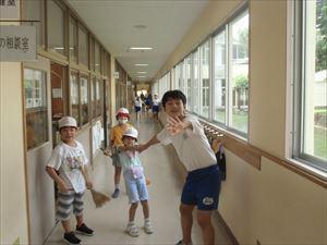 子供たちは大喜びで中学生にくっついています。初日は少し距離を置いていたようですが、2日目の小学生、特に低学年は嬉しくて仕方ありません。たくさん話しかけてくれてありがとう。この日の1時間目は総合学習「少年少女五十川獅子踊り」の練習でした。3年前にすばらしい発表をした先輩たちです。パートごとにしっかりと指導をお願いしました。授業以外でも給食や清掃でも丁寧に教えてくれてありがとうございました。