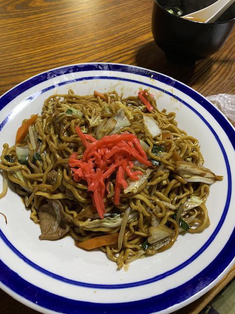六ちゃん食堂(0238-43-3048)の焼きそば。よし!冷やしたぬき蕎麦を食べよう!と思っていたのに、口から出たのは「焼きそばお願いします!」この日はソースが多めでした。