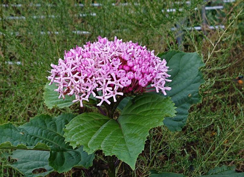 ●散歩道で目にとまった花は「ボタンクサギ」でしょうか 小さな花が集まってくす玉のように丸くなっています「クスダマクサギ」ともいうそうです 樹高1m〜2mになるシソ科の木のようです 日本語で「牡丹臭木」 きれいな花を咲かせている花木とはいいながら臭い木とは