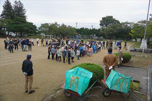 9日(土)保護者の皆さんには早朝からグラウンド整備作業にご協力いただき、ありがとうございました。4年ぶりに全保護者・児童(4〜6年)が集まってPTA環境整備作業を行うことができました。コロナ禍では環境部を中心とした役員のみで行うなど、感染防止に配慮して縮小して行っていました。グラウンドに全保護者と4年生以上の児童が集まった光景は本当に嬉しいものでした。そして、始まった草むしり、多くの人数の力は大きいものです。事前に職員が車でレーキを引いて草を削ってきれいにしていたものの、まだまだ細かい草はたくさんありました。30分ほどでみんながちらほら立ち始め、疲れたかと思ったらそうではありません。草をさがしているのでした。100mコース、集会トラック、内側のフィールドを見て見ると、本当に草が1本もないのです。本当にきれいなグラウンドにしていただきました。保護者・児童・職員が力を合わせるとものすごいことができるのだと感激しました。今週末に行われる運動会を最高の環境で行うことができます。ご協力ありがとうございました。心より感謝申し上げます。