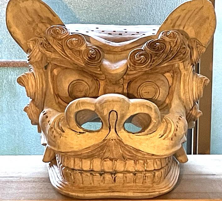 この森助獅子型の獅子頭は二作目で、一作目は習作として昨年制作したが、塗りを施し完成させ獅子宿に残