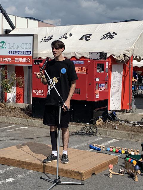 こどもショー。長井市けん玉ひろばスパイクのシェルビーさん。飛んで跳ねてバク転とアクロバティックなショーで子ども達が「がんばれー、がんばれー」と楽し気に応援していました。アルカディオンとじゃんけん大会。子ども達がじゃんけんで勝つまで戦ってくれる(?)優しいスーパーヒーロー。でも暑さには弱い…。バルーンアートつばさくん。子ども達の要望に瞬時に応えて作ってくれる素敵なアーティスト。暑い中、長蛇の列の要望に応えていただきました。ご協力いただきました皆様、ありがとうございました。