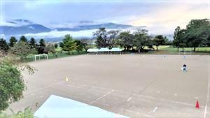 天気予報は曇りのち雨。朝方少し雨もぱらつきましたが、この後天気は午前中なんとか曇りで推移しそうです。休憩・水分補給をしっかりと行いながら、運動会を実施いたします。天候や競技の進行状況によってはプログラムや予定時間の変更もありますが、役員の皆様、保護者の皆様、ご協力をよろしくお願いいたします。太陽も顔を出し始め、雨で消えたラインも職員が大急ぎで引き終えました。