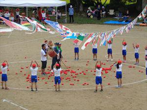 16日(土)に行われた運動会の様子。今回は全校生が声を出して行った応援合戦の様子と低中高学年ブロックで行った団体種目の様子をお知らせします。迫力ある応援がグラウンドから地域に響き渡りました。団体種目、1・2年生はまりいれ、3・4年生はタイフーン、5・6年生はムカデ競争でした。