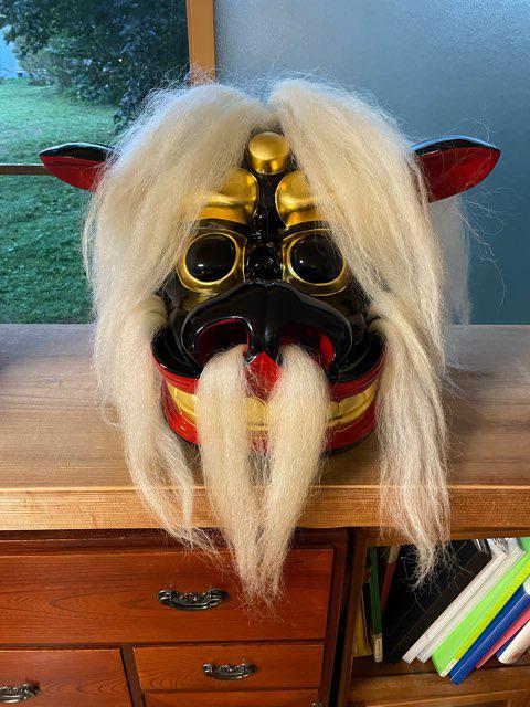 これから獅子頭内部に記名を入れ、ちょっとした獅子舞での傷を修復する。