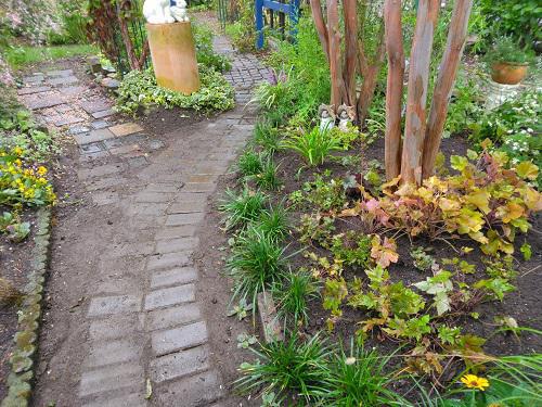 昨日も今日も庭いじり(リフォーム)〜〜作業の後はいいのか悪いのか決まって雨が降る、変な天気です。予報では雨なしなのに・・・でも、少しは涼しくなってきたので大助かりです。 我が庭は、いくつかの島で出来ており、それを繋ぎあわせて一つの庭を構成しています。 夏椿のエリア〜(ここはシンボルツリー夏椿のエリア)基本的には日陰のエリアなんですが土替えと植栽品種の見直しを行ってます。 反対方向から〜パーゴラの奥、左側になります。(手前には“青色フジバカマ”が開花中) 裏庭へつながる、もう一個の通路通路のコボレダネで育った苗を拾い集めて移植も・・・ 桜の木の下にあるコボレダネのグラスを移植! グラス”ペニセタムグリーンスパイク"はこの通路の奥に2ヶ所に新しく!ついでに通路の敷石を敷き直して奥行き感をだして左側は土増し中・・・ ↓移植したエリア。。。 今日のバラは。。。 雨上がりの"キャスリンモーレー” 今は緑いっぱいのガーデンといったところです。もうちょっと涼しくなると色づいてくるのですが、、、