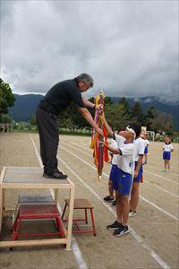 16日の運動会の紹介です。最終回は、低中高学年部ごとの全員リレー、そして優勝・チームワーク賞の発表です。全員リレーは、それぞれのチーム(赤は赤・黄、白は白・青のチーム)の作戦により、男女や学年が入り混じって走ることになり、抜きつ抜かれつ最後まで目が離せない争いになりました。チームワーク賞は事前の練習、応援合戦、競技でのまとまりを審査していただきました。優勝は全員リレーでの得点により白組、チームワーク賞は動きの工夫と声のまとまりが良かった赤組でした。全員で精一杯声を出して応援し、競技の仲間への大きな励ましの声、そしてご家族の皆さんの大きな応援で子供たちは「Never Give up!完全燃焼!みんなが輝く運動会!」のスローガン通りに、最後まであきらめず、競技でも応援でも自分の力を全部出し切り、最後は一人一人の笑顔が輝いたすばらしい運動会になりました。