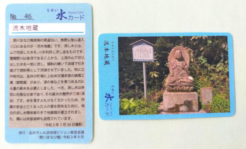 NO46は「流木地蔵」です。野川まなび館を利用した方、展示室を見学した方への記念品として無料で配布しています。ご希望の方は、事務所までお声がけください。※発行年度内は無料で配布しています。次年度からは50円の協力金を頂いています。※郵送による配布は受け付けておりませんのでご了承ください。発行 長井ダム水源地域ビジョン推進会議