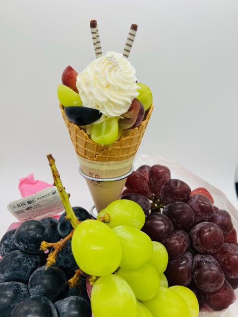 【10月8日・9日】2日間限定で《ぶどう食べ比べパフェSpecial》が登場です!新種のぶどう「富士の輝」通称"ブラックシャインマスカット"が入荷しました!そこで・・・皮ごと食べられる大粒ぶどう3種の競演です♪●富士の輝"ブラックシャインマスカット"●シャインマスカット●ナガノパープルみなさまのお越しをお待ちしています。 ・一番上(奥に)が新種のぶどう「富士の輝き」 パリッとした皮はシャインマスカットに似ています。とにかく甘い!!・手前左が「ナガノパープル」 ジューシーで濃厚な甘さのぶどうです。・手前右側が「シャインマスカット」 お口の中に広がるマスカットの香り、シャインならではです♪