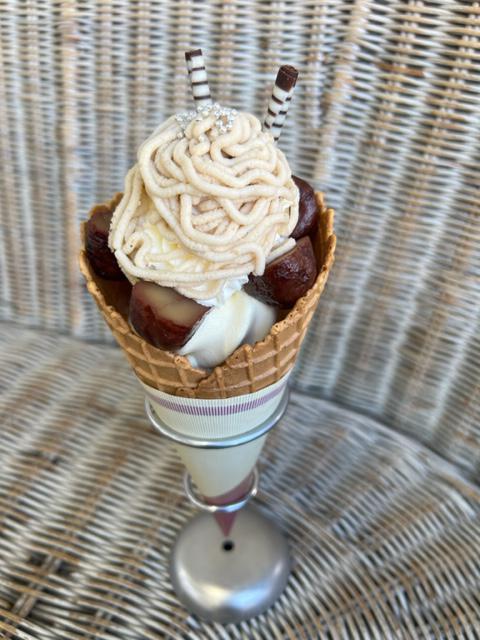 今日は秋の日差しが心地よい、爽やかなお天気です♪こんな日はベンチで「マロンパフェ」はいかがでしょう。ほっくり和栗を・マロンクリームにして・手作りマロンソースにして・そして渋皮ごとシロップ煮にしてパフェに仕上げました。フルッティア/オリジナルバニラと形をかえたマロンのおいしさをお楽しみ下さいませ。