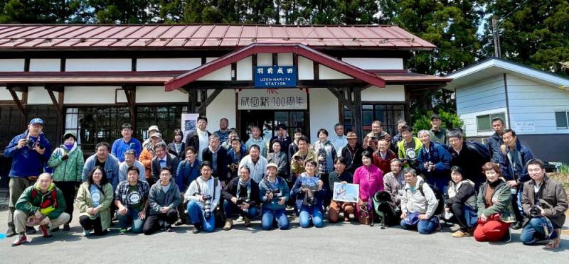 米屋さんに聞きたくても聞けないでいることがある。なぜ木造駅舎に思いを寄せるのか。何故そこで忙しい時間を割きながら写真展を行うのか。なぜ羽前成田駅のような場所で、高校生と合同の写真展に協力してくれるのか。駅舎と線路と、地元の人たちと仲間たちとどんな鉄道風景を創りたいと願っているのかと。 写真家が自身の作品について多くを語らないように、その活動についても多くを語ることはないように思う。米屋さんもそうした一人であろうと思う。せめて米屋さんのこれまでのブログの中から、熱い想いのひとしずくをすくい上げたいと思う。そして、私たちのあり方も考えていきたいと思う。 今回、写真展を開催して良かった〜と感じた瞬間がありました。それは、駅舎内に子供からお年寄りまで、6〜7名ほどの方にお集まりいただいた時でした。10人も入れば狭く感じるような待合室です。写真を見て、懐かしそうに昔話を始めるお年寄り、その周りで小さな子供が走り回っていました。人々の話し声が響き、賑やかになった信濃川田駅の待合室。それを見ることができました。 「数年振りに駅に来た」と、そんな話も何度か聞きましたが、駅に足を運んでいただく切っ掛けになれたことも、自分としては嬉しかったです。作品を見ていただくことはもちろんでしたが、「駅を見て、駅舎の雰囲気を感じていただくこと」が、無人駅で写真展をやったもう一つの“思い”でした。 → 鉄道憧憬 屋代線のこと (fc2.com) (西大塚駅の登録有形文化財登録記念事業について)はじめ、山形鉄道の担当者さまからお声がけいただいた時には、単に「米屋の写真を展示して欲しい」旨のお話でした…。しかし、今回はめでたく文化財登録となった訳ですので、長く駅を利用されてきた地域のみなさまにも参加していただき、一緒に祝うことができればなぁ、と思いました。 いささか急ではありますが、川西町・大塚地区の皆さまにお声がけして、家庭のなかのアルバムにひっそりと綴じられているような、「思い出の写真」をご提供いただき、資料などとともに展示する予定です。→ 未分類 : 西大塚駅「登録有形文化財」 登録を祝うイベントを開催します! 【おらだの会】高校生との合同写真展は22日(日)午後2時半まで。米屋さんは22日に羽前成田駅においでになり、高校生とのアドバイス会を行っていただく予定です。(写真は4月に行われた「広田泉写真展」時の集合写真です。)