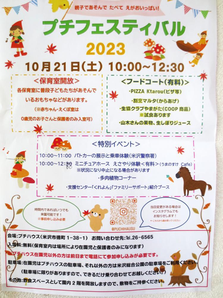 プチハウスの秋まつり「プチフェスティバル」を4年ぶりに開催します。キッチンカーやミニチュアホースがやってきます!ぜひあそびに来てください!(^^)!