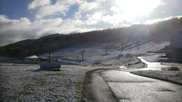昨日で天元台高原の夏山リフトは終了となりました。昨日朝の高原駅周辺、深夜から早朝にかけて1350mまで雪となりました。山頂付近は足首まで埋まる積雪、毎年リフト最終日は雪となりますね、ロープウェイは次の日曜29日で終了します。紅葉は今ロープウェイが見頃です。